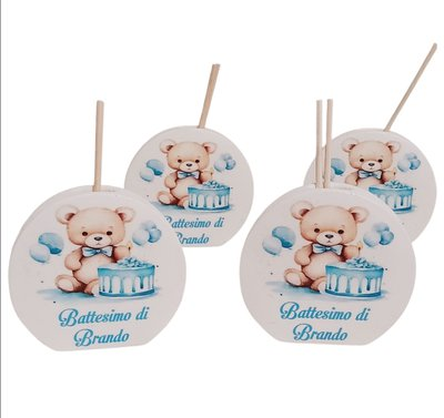 Diffusore d' essenza artigianale profumatore battesimo orsetto bimbo segnaposto bomboniera