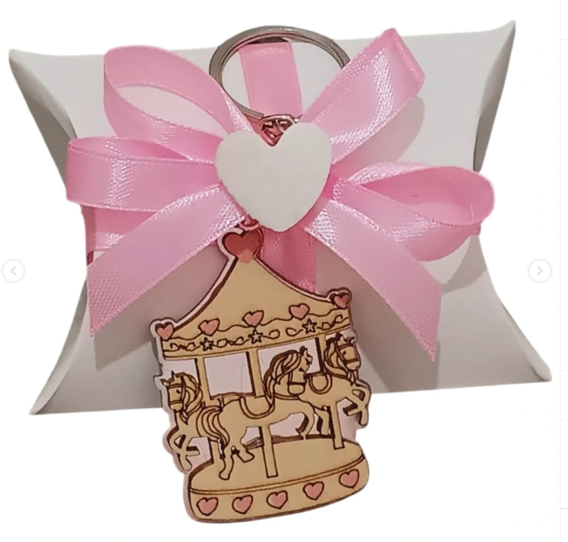 Bomboniera portachiavi giostre bimba battesimo segnaposto nascita cavallo a dondolo