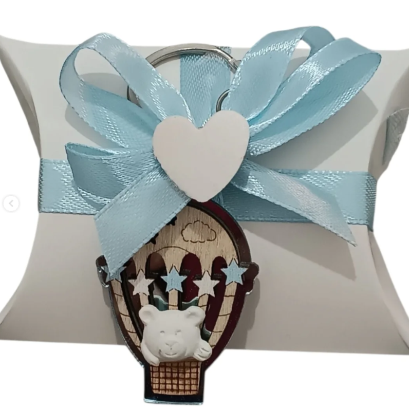 Bomboniera portachiavi orsetto mongolfiera bimbo segnaposto nascita