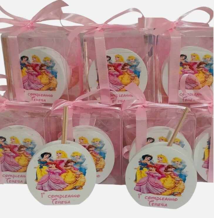 Bomboniera compleanno battesimo bimba diffusore essenze Principesse disney aurora belle ariel sirenetta biancaneve cenerentola