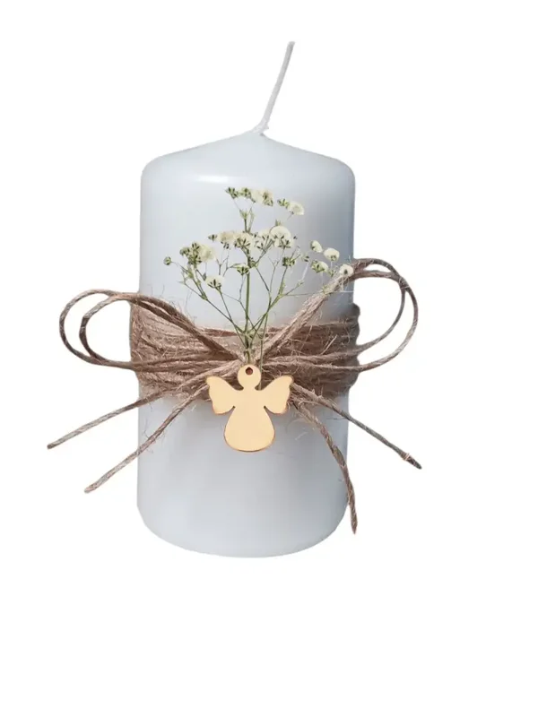 Bomboniera candela 9cm shabby comunione cresima battesimo angelo croce tao tau segnaposto