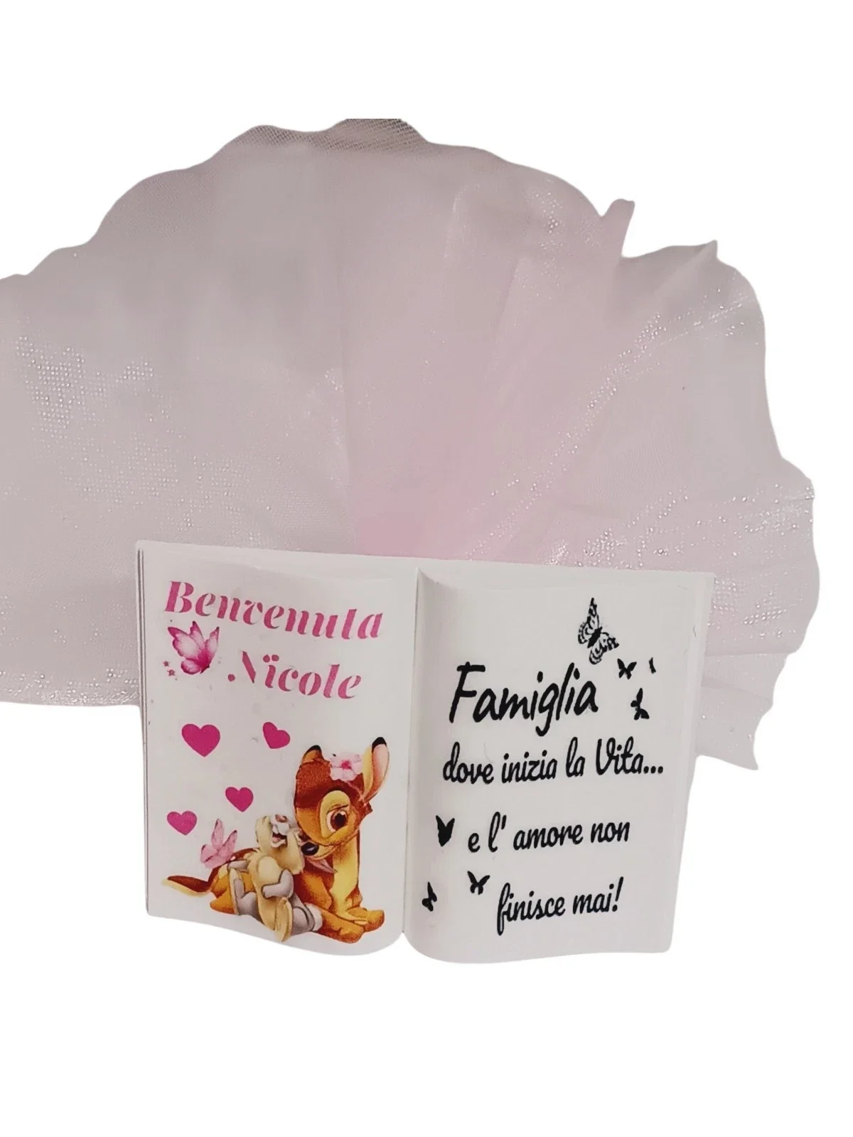 Bomboniera libro statuina battesimo nascita bimba libro favole tamburino bambi bimba