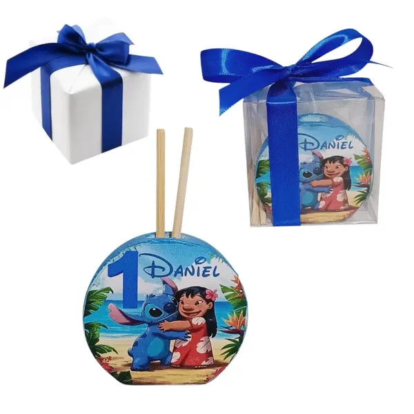 Bomboniera primo compleanno bimbo bimba diffusore essenze profumatore numero uno Lilo Stitich ohana Bing